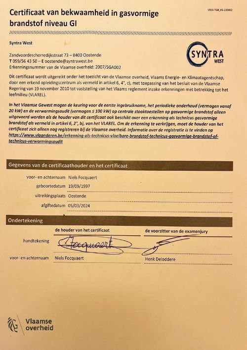- Certificaat van bekwaamheid in gasvormige brandstof niveau GI